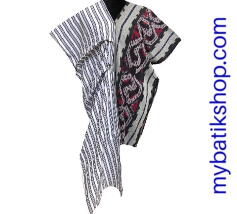 Generously sized fit to XXL (chest 110 cm), these tenun and lurik drapery tops are fun to wear.
